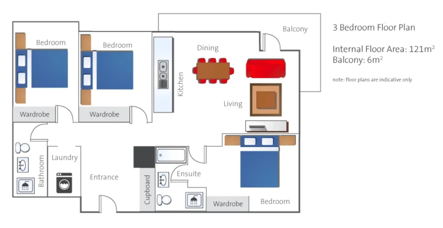Three Bedroom Apartment with Panoramic Views – Levels 4 to 7 Perfect for families or larger groups, these elegant three-bedroom apartments are located on the upper levels of Alpen Ridge, from Level 4 through to Level 7. Spacious and beautifully desi...