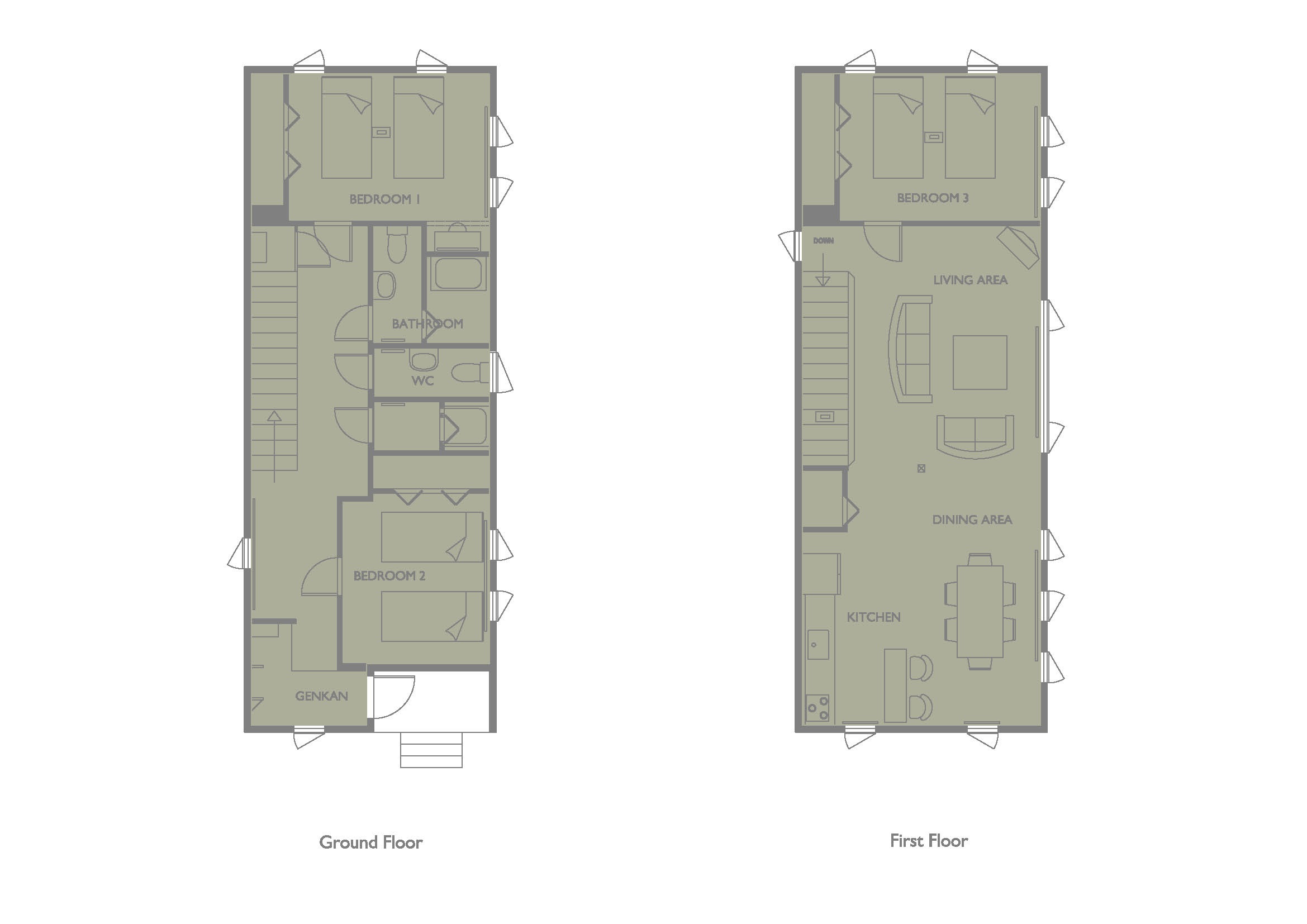 Upon entering the house, guests will be welcomed by a traditional genkan - a fitting entryway for a beautiful house that draws inspiration from both Japanese and western influences. There are two bedrooms on the ground floor of the house, both avai...