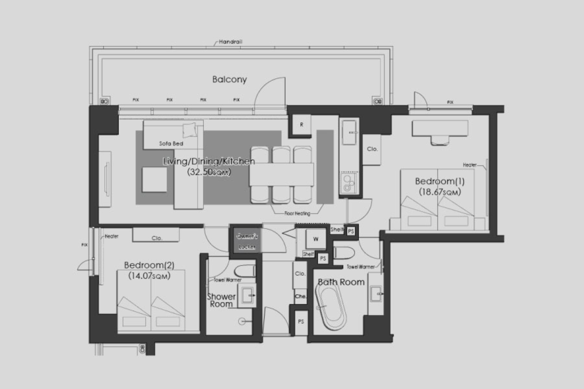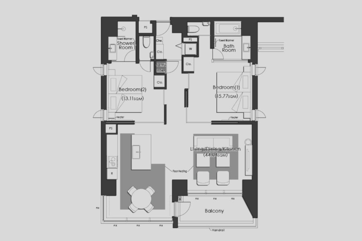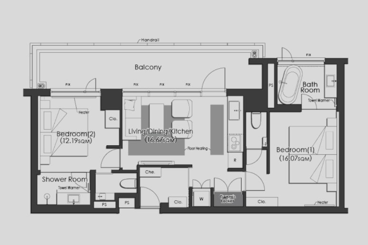 A perfect balance of space and luxury, offering two bedrooms and awe-inspiring views of the Northern Alps.- Refrigerator